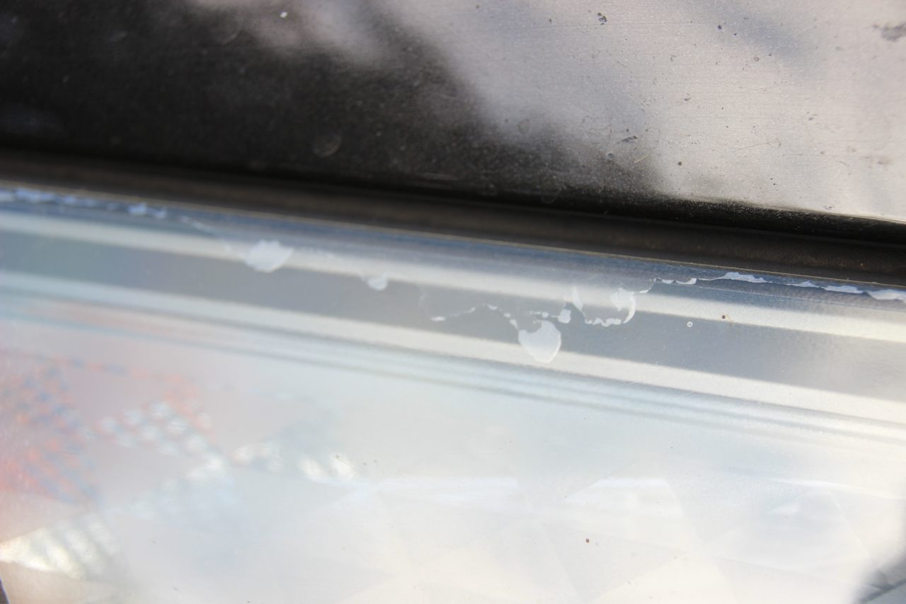 Mittlerweile sind 3 1/2 Jahre vergangen, und es scheint, als wäre die Ablaufzeit der beiden Scheinwerfer gekommen. Bis vor 2 Monaten war nichts zu sehen, und nun löst sich die Beschichtung erneut. Vom Rand beginnend platzt die Lackierung nun ab. Am linken Scheinwerfer löst sich ein kreisrunder Fleck nach einem Hagelkorneinschlag.