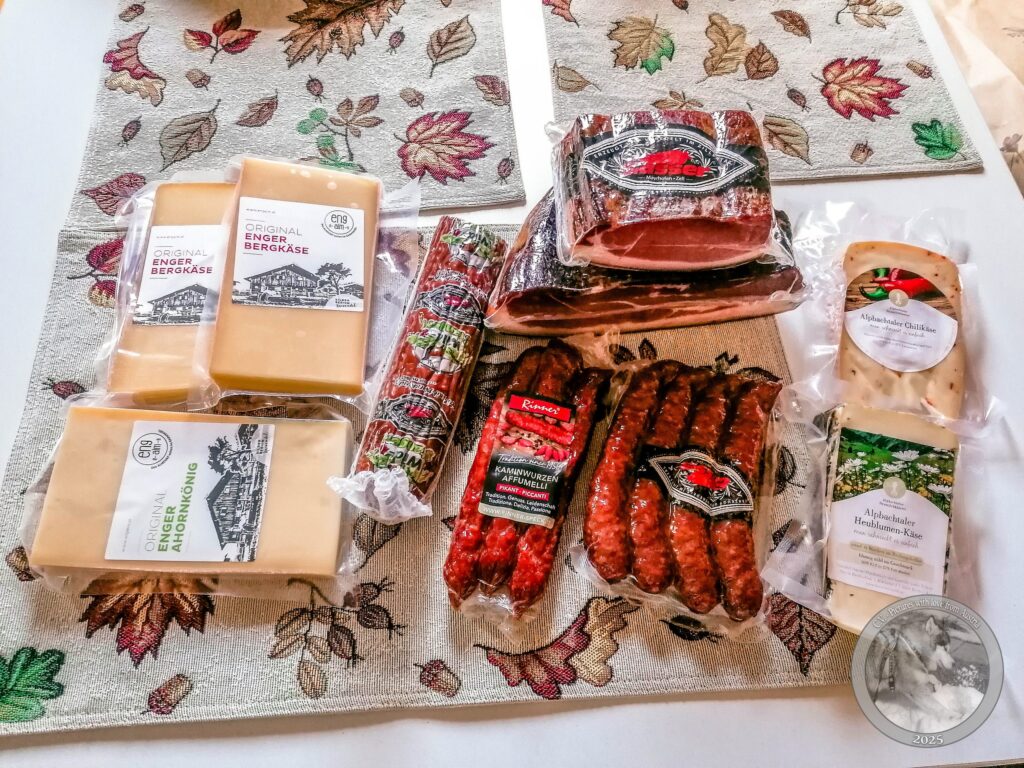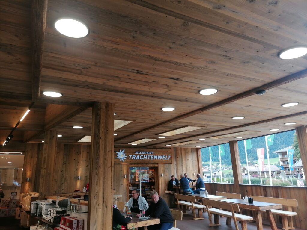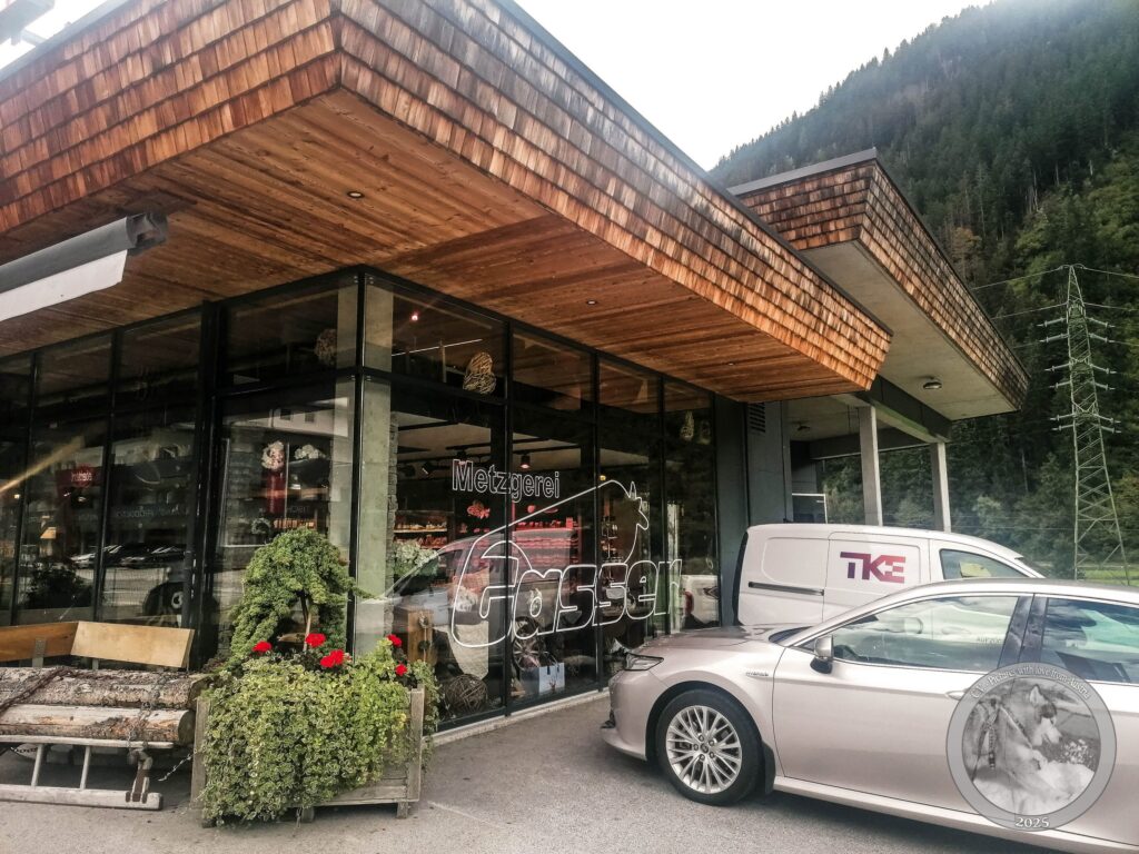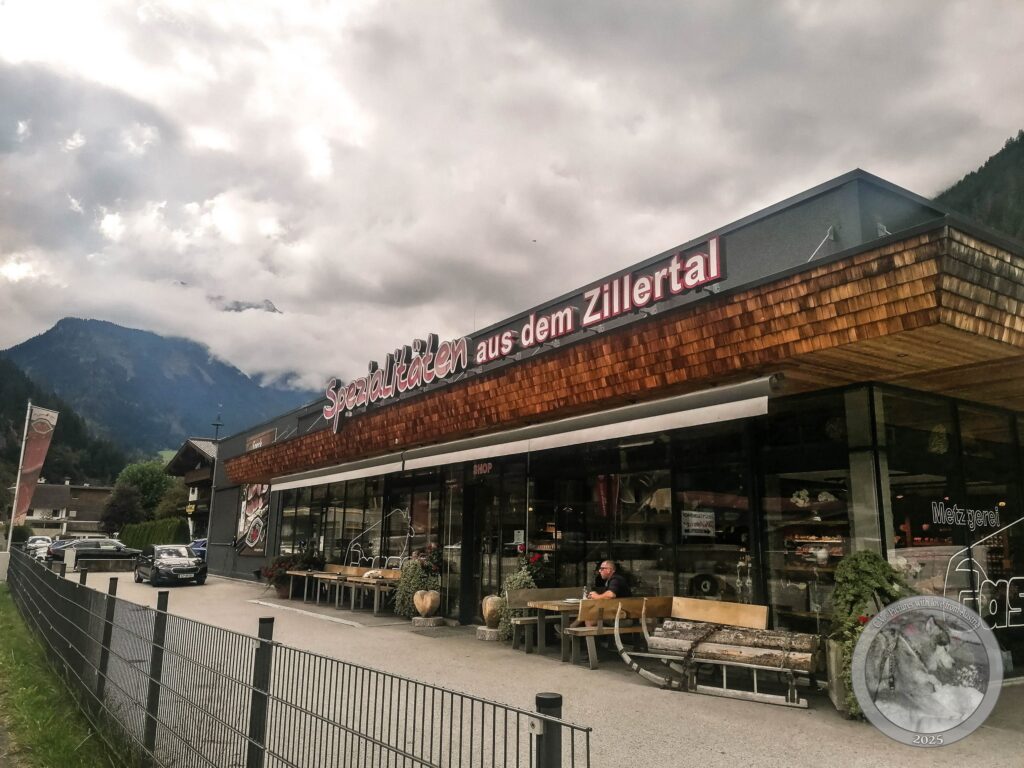Wir wollten auf der Retourfahrt noch die Garberlalm besuchen (Hier gibts die beste Hühnerminestrone!), die war zu diesem Zeitpunkt dann aber leider geschlossen. Also fuhren wir ab Vorderriss in Richtung Sylvensteinsee und über den Damm rüber Richtung Österreich und den Achensee. Von da aus dann über Strass im Zillertal nach Schlitters zur Zillertaler Trachtenwelt, wo wir gegen 13:50 Uhr eintrafen und wie immer eine Kaffeepause einlegten, und schauten was es Neues im Geschäft gab. Ohne weiteren Einkauf, aber dafür zufrieden ob des feinen Cafe Latte den es da gibt, gings danach weiter in Richtung Mayerhofen, zu unserem Specklieferanten, der Metzgerei Gasser.