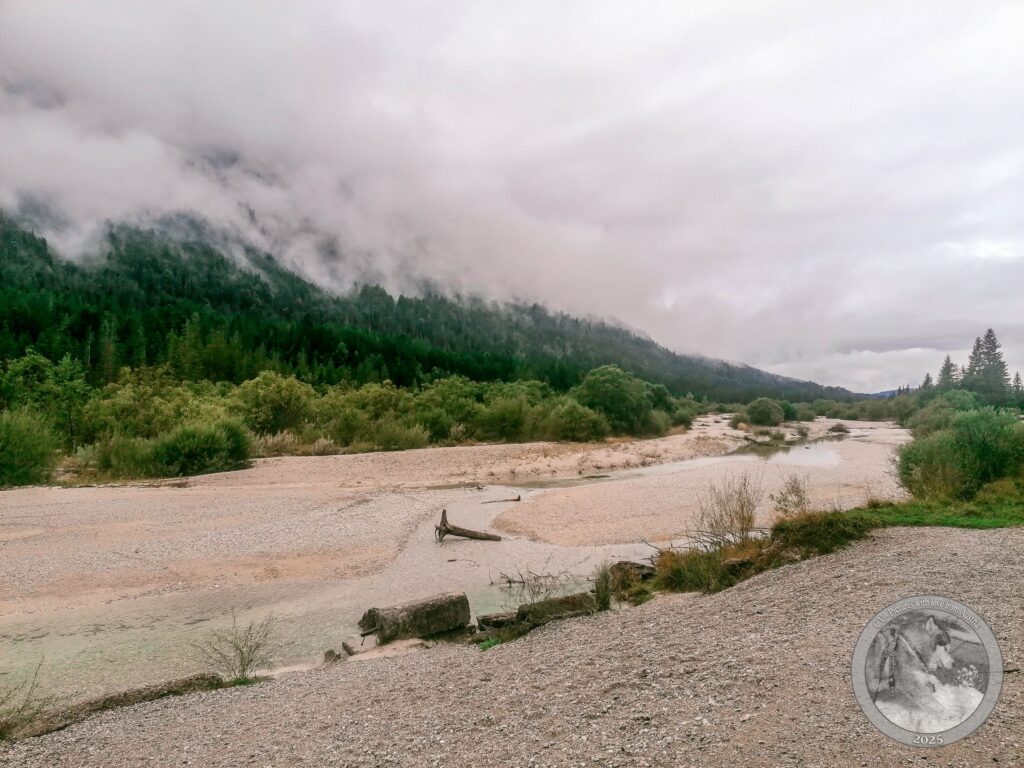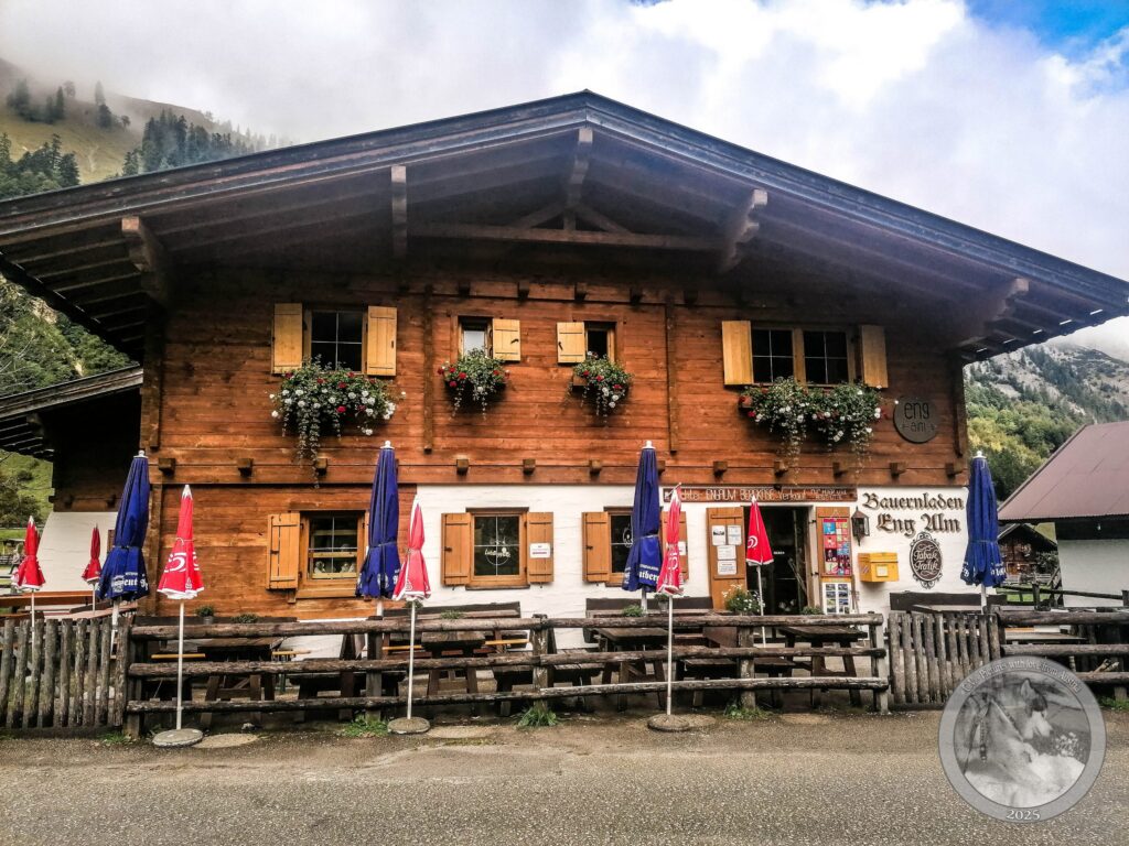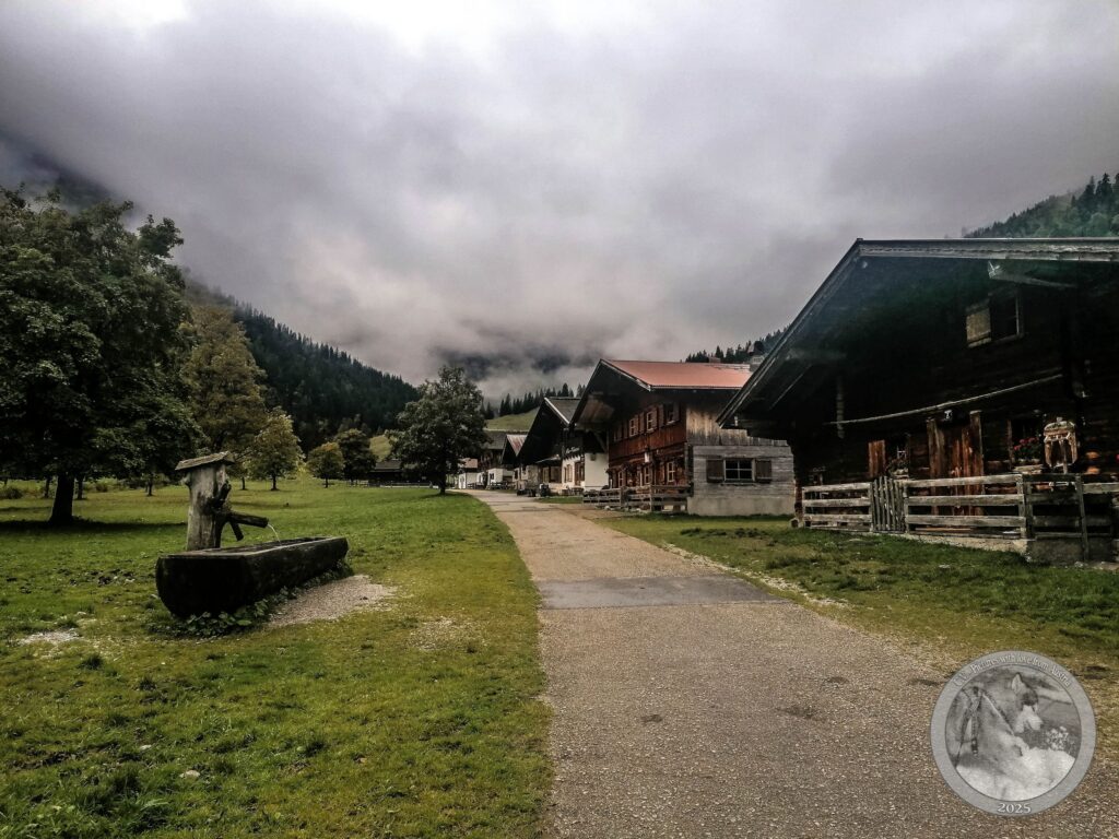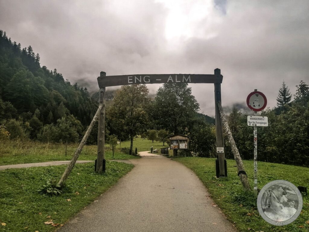 Und weiter gehts, wir fahren gegen 9 Uhr ab in Richtung Krün, Wallgau und Vorderriss. Die kostenpflichtige Mautstraße Wallgau-Vorderriss schlug sich mit 6 Euro zu Buche, war aber die einzige Verbindung nach Hinterriss zum Großen Ahornboden und die Eng Alm, unserem nächsten Ziel. Die Straße führt übrigens durch das malerische Isartal, wo wir auch kurz für Nukka stehen blieben. Die Mautstraße zwischen Hinterriss und Eng kostete dann nochmals 7 Euro bis wir am Ziel, der Eng Alm waren. Dafür ist der Parkplatz da kostenlos gewesen. Auch ein positiver Aspekt. Der Weg vom Parkplatz zum Almdorf hinten war in kaum 10 Minuten erledigt. Das schafft wohl jeder. Die Eng Alm selbst haben wir diesmal nicht besucht, dafür aber wieder den Bauernladen. Hier gibts ein paar verdammt gute Käsesorten und so nebenbei auch andere Schmankerln und Souvenirs. Einige Käse ging dann mit. Ist Pflicht, wenn man schon da ist. Danach retour zum Parkplatz, noch schnell den Eng-Kiosk besucht und auch hier 2 Sorten Käse ergattert, um dann wieder durch die Ahornböden (der Ahornstamm mit dem riesigen Hallimasch drauf stand auch noch immer) zurück in Richtung Vorderriss zu fahren.