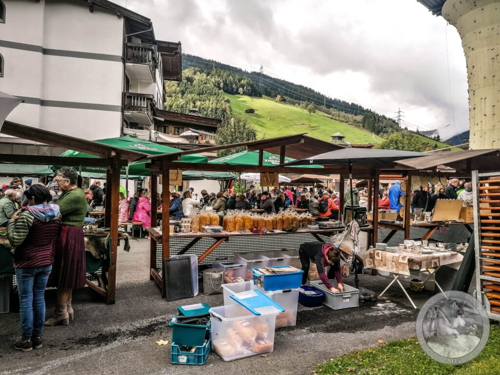 Und ja, wir haben wieder groß eingekauft *lach*. Die Qualität ist eben eine ganz andere als man bei uns zu Hause bekommt, und die Preise passen dafür. Noch dazu spare ich mir die Versandkosten, wenn ichs in Mayerhofen gleich direkt mitnehmen kann. Und nach all den Besuchen und Einkäufen kamen wir endlich um 16 Uhr im Hotel Glockenstuhl bei unseren Gastgebern Christine und Hannes Eberl samt Familie und Team an. Wir wurden wie gewohnt freundlichst empfangen, diesmal vom Junior der seine Sache echt gut machte und es ihm auch sichtlich Spaß machte die Hotelgäste an der Rezeption zu begrüßen. Check-In dauerte nicht lange, und schon machten wir uns zusammen mit Nukka auf den Weg zum Bauernmarkt, den wir auch noch besuchen wollten. Die Anbieter sind zwar meist die Gleichen wie immer, aber diesmal war auch wieder der Weinstand mit dem absolut feinen Sturm (heuer leider kein roter …) dabei, und da schlugen wir auch zu. Ja, er schmeckte wieder gut und war wohl von feinen Reben erzeugt. Süss und brandgefährlich. Anschließend dann ab ins Hotel, Abendessen, und Ende des Tages wie man so sagt. Genug ist genug, und Nuk’ war auch schon leicht gesäuert weil wir so viel besucht hatten.