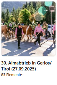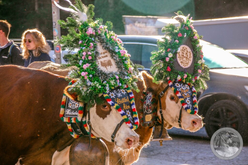 Yesss, der Grund warum wir hier sind, findet heute am 27. September statt: Der 30. Gerloser Almabtrieb! Ein Volksfest. Um 9 solls losgehen, aber wie schon voriges Jahr gabs da wieder widersprüchliche Angaben. Ich gehe mal grundsätzlich davon aus, dass so ein Event mit Beginn der Straßensperre (angegeben von 10 bis 15 Uhr) anfängt. Doch Irrtum, die ersten Kuhherden waren schon um 9 Uhr angekündigt. Also mussten wir uns beeilen, mit Nukka noch ordentlich gehen weil sie im Zimmer bleiben musste (die Menschenmassen und den Lärm tun wir ihr nicht an) und wir auch noch frühstücken. Wir haben sicher den ersten Abtrieb verpasst, aber beim zweiten um 9:30 Uhr standen wir schon in der Menge und bewundertem die toll geschmückten Kühe die an uns vorbeizogen. In kürzester Zeit war der Ort mit Menschen geflutet und die Straße dicht. Wahnsinn was sich da abspielte. Ein richtiges Volksfest. Und die meisten davon: Holländer und Deutsche. Am besten fand ich die “Oranjes” wenn sie in Tiroler Tracht mit ihren Holzschlapfen daherkamen. Oida! Passt null zusammen, aber das ist denen sowas von wurscht. Genauso die Deutschen wenn sie mit den Fliesjacken von der Trachtenwelt herumstolzierten, mit dem Österreich-Wappen am Rücken! Wie nennen die Woken sowas? Kulturelle Aneignung? Ah! Da machts nichts aus? *hahahahaaaaaa* Wir haben ja doch den schöneren Adler, auch wenn er pleite ist … (Hab ich auch erwähnt dass ich noch müder wie am Vortag war, weil Nukka wieder nachts lästig wurde?)