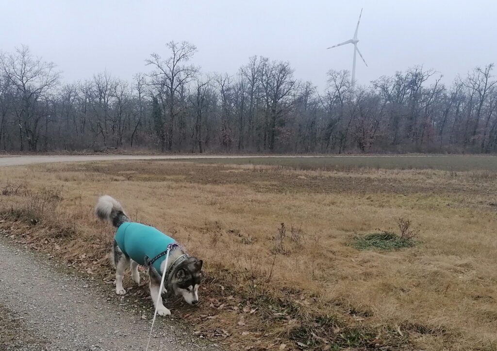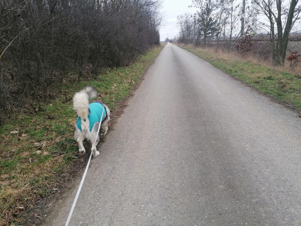 Unterwegs auf Wegen wo uns niemand am Arsch geht. Nukka genießt es, endlich wieder raus- und rumzukommen. Sie hat schon die zweite Nacht ohne Body schlafen dürfen. Ich hoffe die Genesung geht so weiter. In Geduld müssen wir uns trotzdem noch weiterhin üben, aber ich glaube, das Gröbste haben wir hinter uns.
