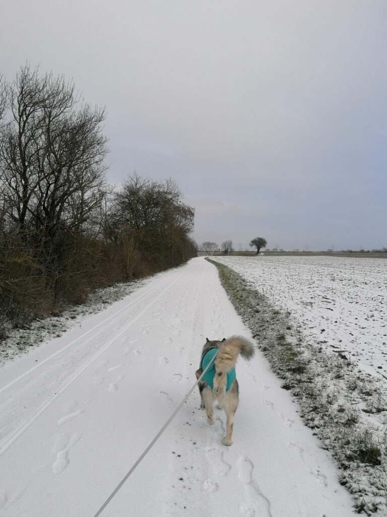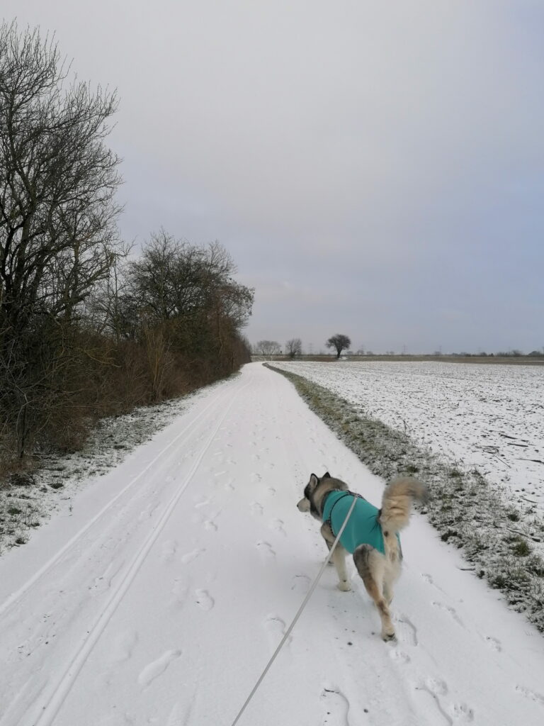 Gestern Abend sind wir noch eine große Runde in der Siedlung spazieren gewesen. Sie läuft gut, dürfte weder Schmerzen noch Probleme mit den Nähten haben. Heute mit dem Schnee müssen wir dann aufpassen. Glatt oder Gatsch, beides wäre nicht gut. Aber schauen wir mal was der Tag bringt.