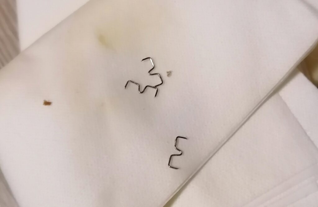 Das ist die noch offene Stelle. 2/3 der Naht sind schon trocken und verheilen gut.